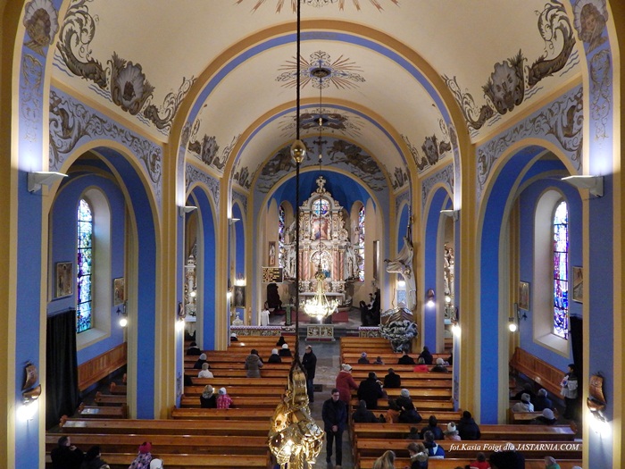 -Kościół wymalowano w kolorach morskich w tonacji biało-niebiesko-seledynowej. Wystrój świątyni bogaty w motywy morskie i rybackie.