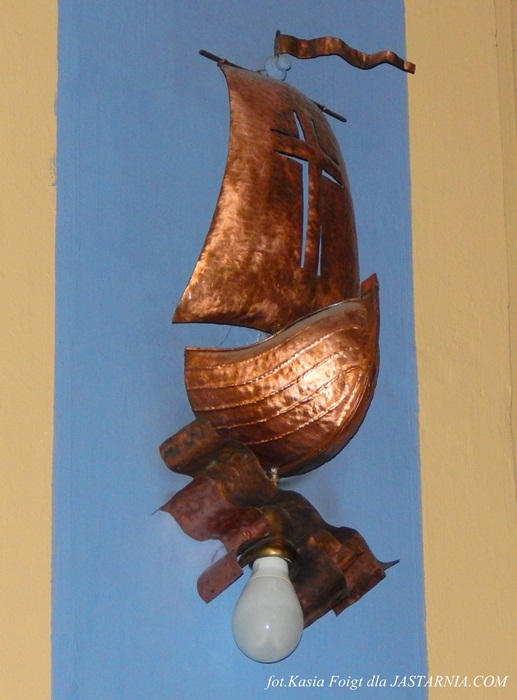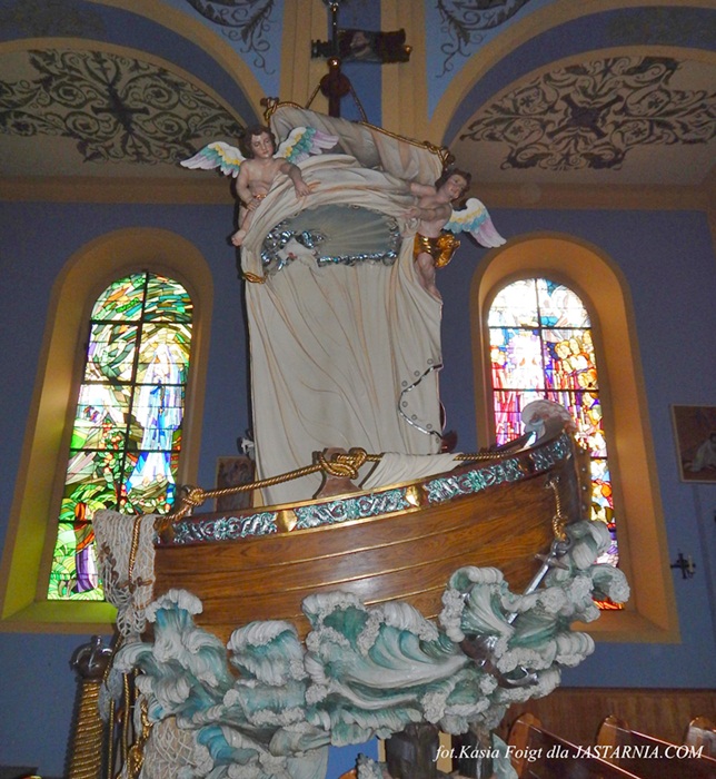 -Przy jednej ze ścian kościoła w małej łodzi rybackiej umieszczono kopię cudownej