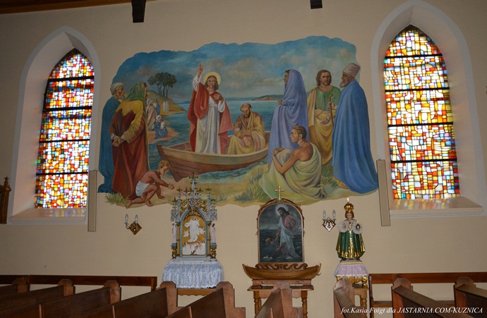 Na jednej ze ścian znajduje się piękne malowidło przedstawiające scenę Chrystusa nauczającego z łodzi oraz wizerunek Matki Boskiej