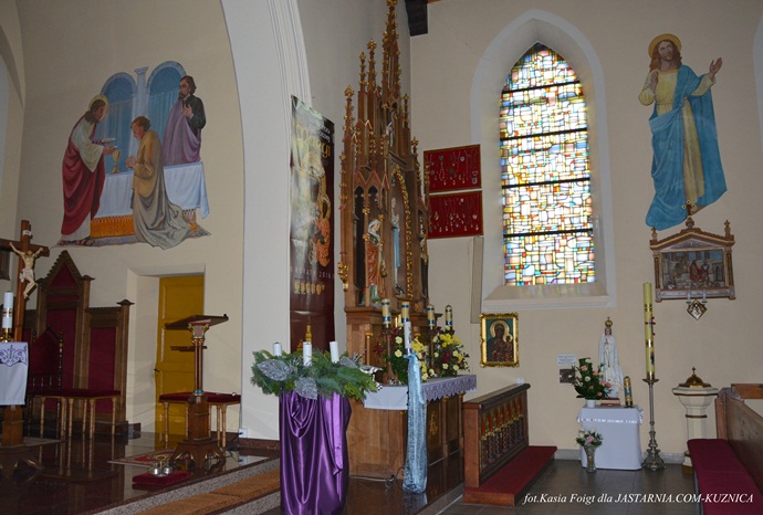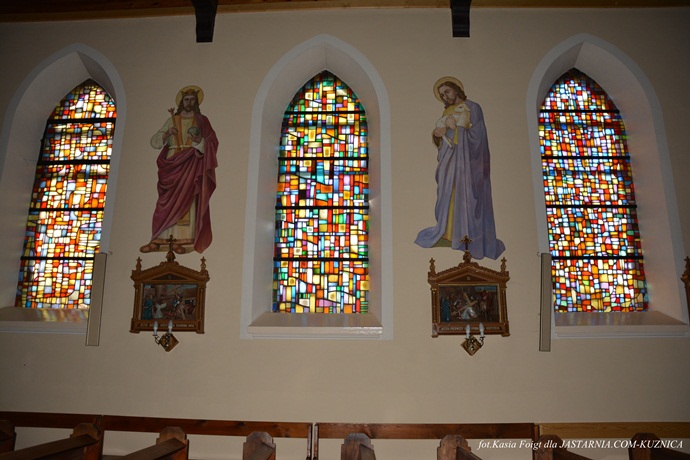 dwa boczne ołtarze: ołtarz Najświętszego serca Pana Jezusa i