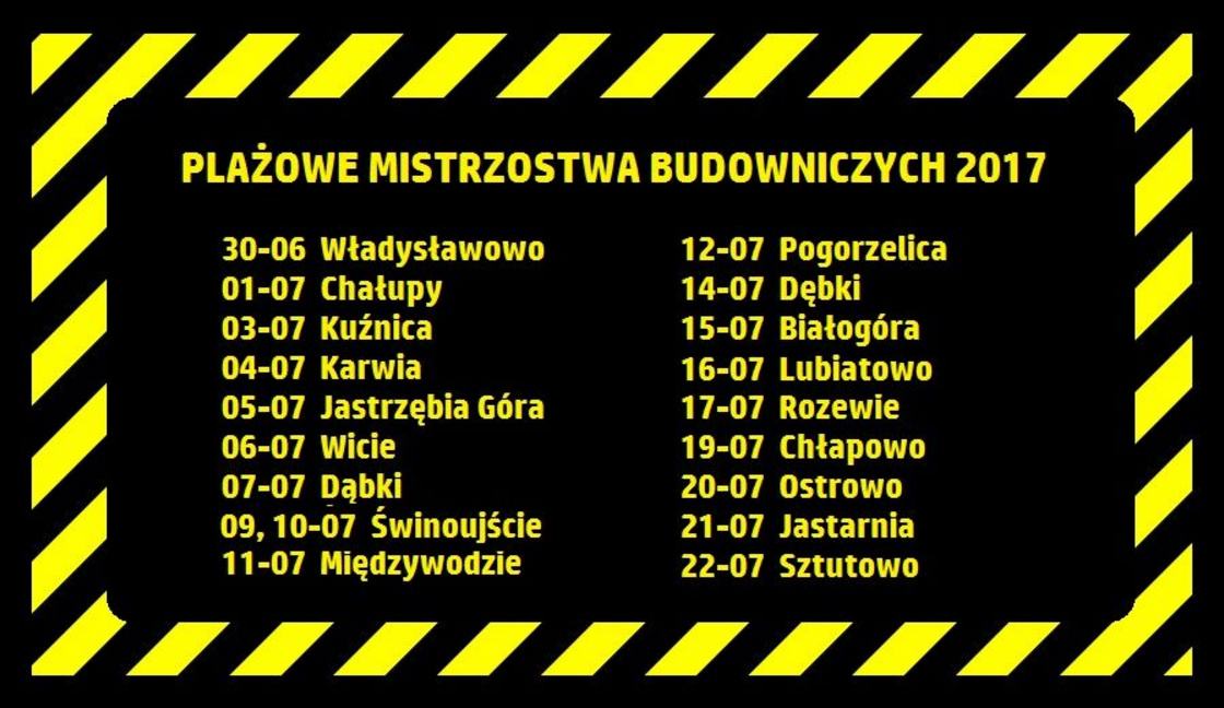 O akcji na bieżąco informować będzie profil Plażowych Mistrzostw Budowniczych na Facebooku - Będziemy informować nie tylko o tym gdzie aktualnie jesteśmy i gdzie jeszcze będziemy, ale także o tym jak przebiega impreza każdego dnia. Zamieścimy także zdjęcia z każdego budowania oraz akcji towarzyszących - zapewnia Marcin Szewczyk, który jako inżynier Janusz od początku istnienia akcji prowadzi wszystkie imprezy - Warto polubić nasz profil, aby być na bieżąco i wygrywać nagrody. Organizatorom zależy przede wszystkim na tym, aby w akcji wzięło udział jak najwięcej ludzi - Zabawa rozpoczynać się będzie o godzinie 11, ale już od 10 będziemy czekać na Państwa na plażach. Pierwszego dnia budujemy we Władysławowie, nazajutrz w Chałupach. Potem spotkamy się w Kuźnicy, Karwi i Jastrzębiej Górze, a następnie przeniesiemy się w stronę zachodniego wybrzeża, by znów wrócić na wschód. Zakończenie akcji odbędzie się 22 lipca w Sztutowie. Na wszystkich plażach na budowniczych i kibiców czekamy z niespodziankami od naszych partnerów, między innymi słodyczami od firmy Flis i ręcznikami plażowymi firmy Zwoltex - mówi Marcin Szewczyk - zamówiliśmy także fantastyczną pogodę - zapewnia.