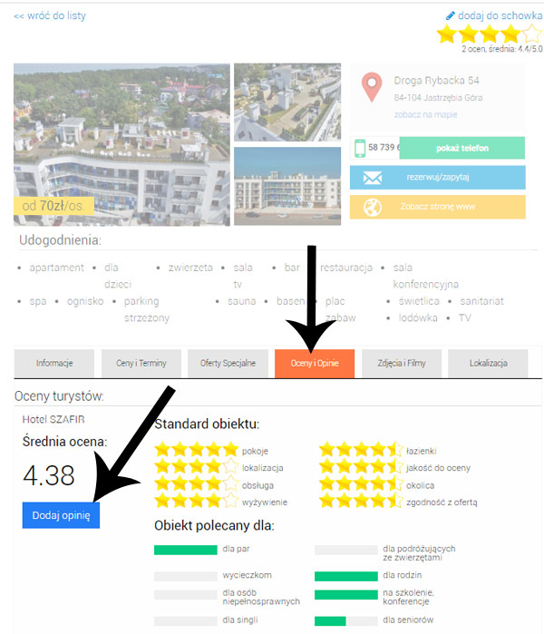 Można dodać opinię do wielu obiektów, restauracji, atrakcji turystycznych, z których usług korzystaliście.
